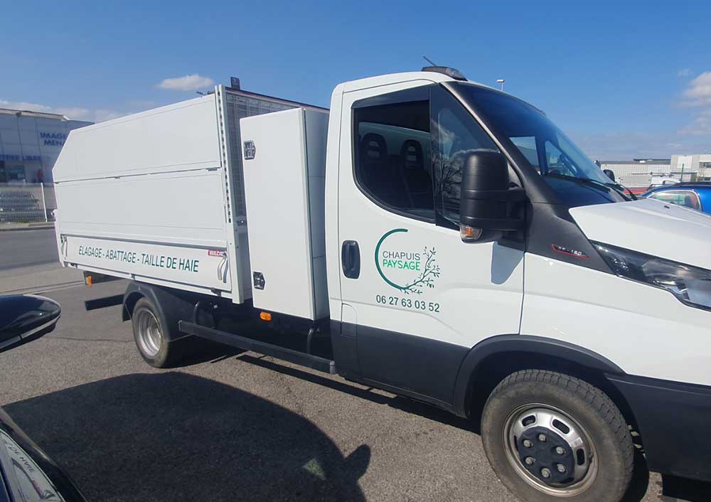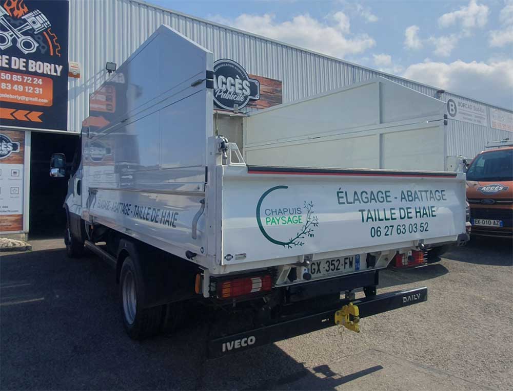 Réalisation d’un covering partiel sur le nouveau véhicule de ce paysagiste spécialisé dans les travaux d’élagage, d’abattage et de taille de haies. Un décor entièrement conçu et réalisé par nos soins.
