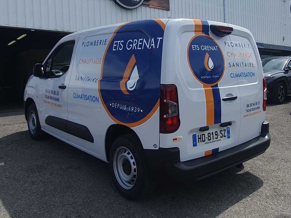 Réalisation d’un covering partiel sur le nouveau véhicule d’une entreprise de Douvaine spécialisée dans les travaux de plomberie, de chauffage et de sanitaire. Décor réalisé par nos soins et décliné sur toute la flotte de véhicules de l’entreprise.