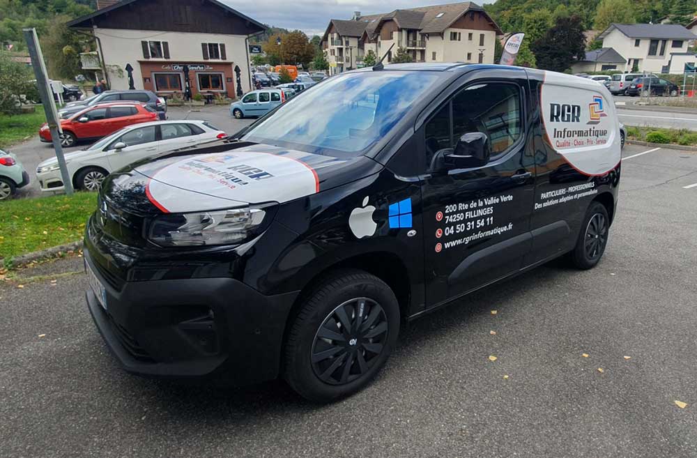 Covering partiel réalisé sur le nouveau véhicule de RGR Informatique, informaticien basé à Fillinges. Une création sur mesure signée par nos soins !
