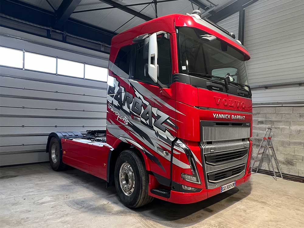 Réalisation d’un covering partiel XXL sur le dernier véhicule de cette entreprise spécialisée dans le transport de matériaux de construction. Le décor a été conçu par notre partenaire graphique OAK-Webdesign.