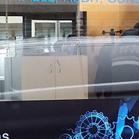Réalisation d’une vitrine à l’image de l’activité de ce cabinet d’expertise comptable au service des professionnels