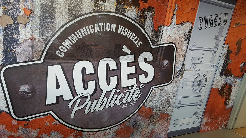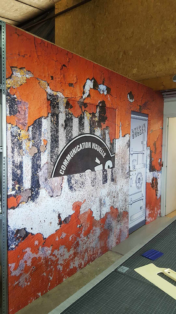Création et installation d’une déco originale permettant de recouvrir les murs de notre bureau. Tous nos adhésifs sont imprimés et préparés sur place afin de s’adapter à toutes les dimensions.