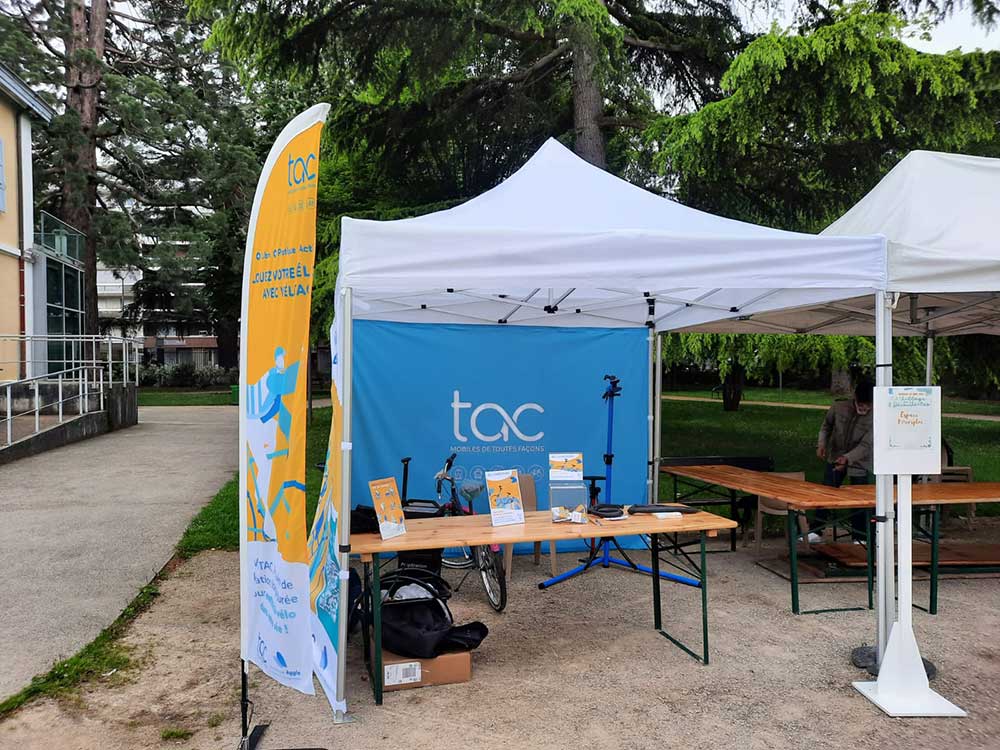 Création d’une bâche décorative pour habiller la tonnelle lors d’évènements organisés par la TP2A qui gère le transport en commun sur l’agglomération Annemassienne.