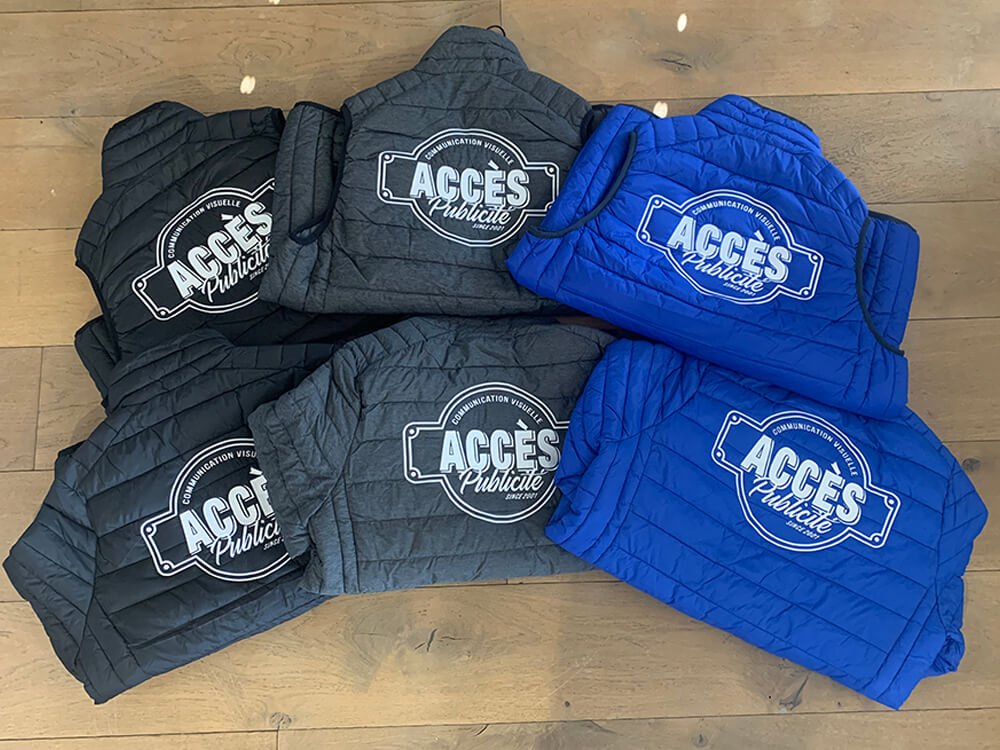 Découvrez nos nouvelles doudounes avec et sans manches. Très belles broderies de notre logo en plein dos et pose d’écussons brodés sur la poitrine.