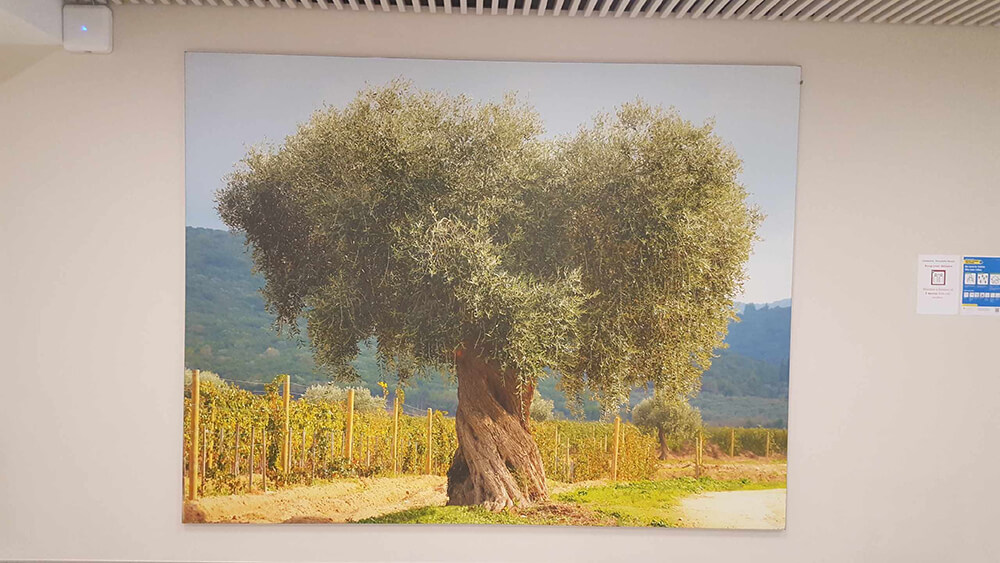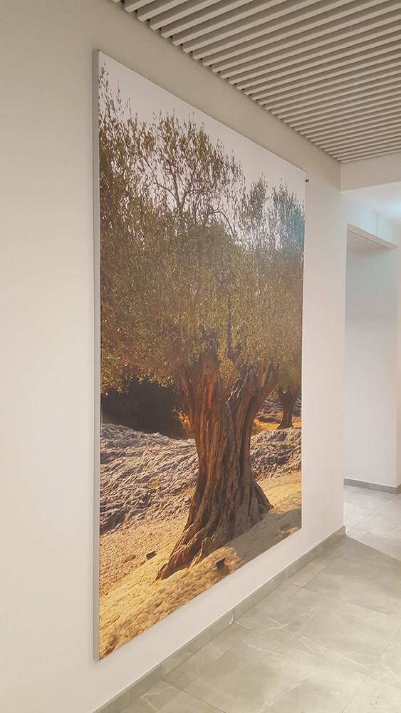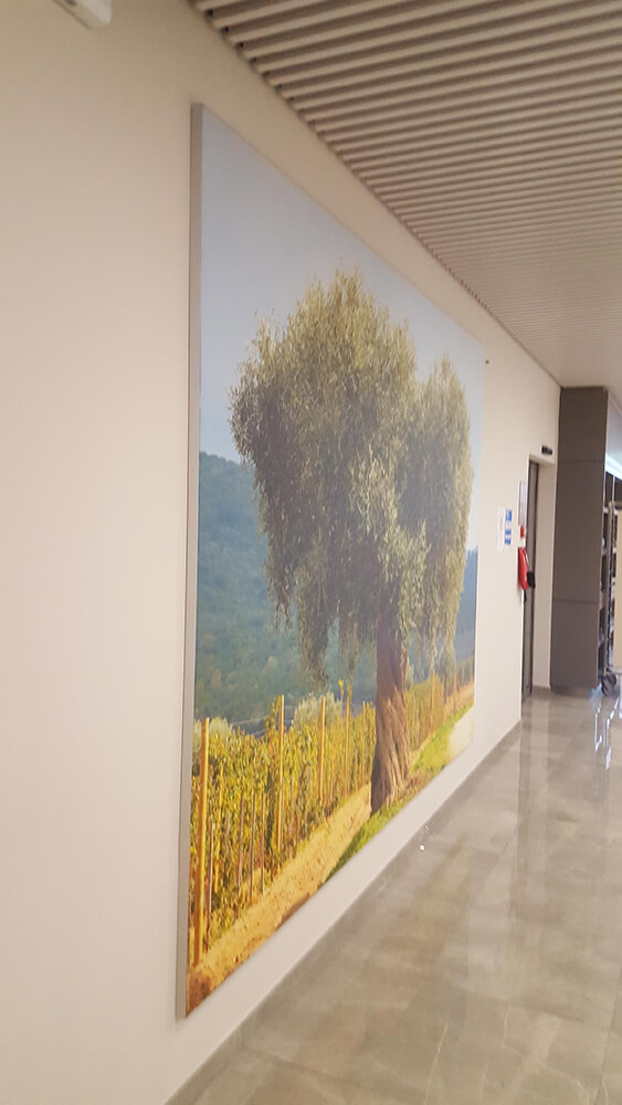 Fourniture et installation de cadres en toile tendue sur châssis aluminium afin de donner une touche originale à cette salle de restaurant basée sur Genève (Suisse). Toutes nos toiles sont 100% personnalisables et imprimées sur place