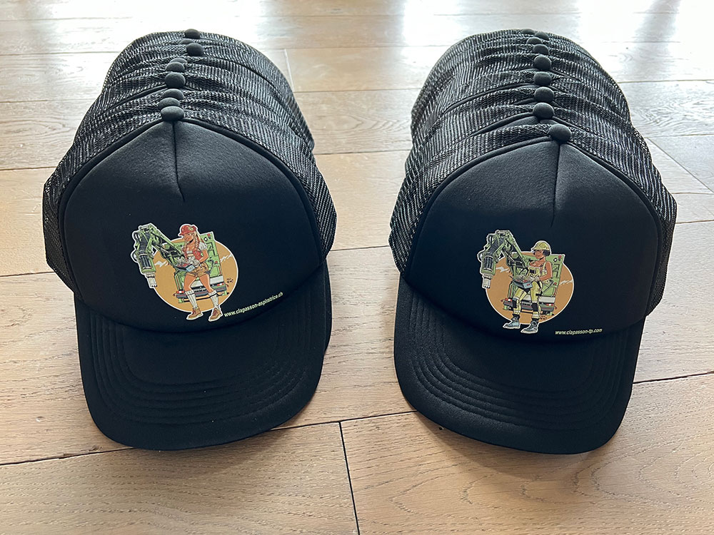 Personnalisation de casquettes pour l’entreprise Clapasson spécialisées dans les travaux de terrassement sur le secteur Genevois. Projet réalisé par notre partenaire graphique OAK-Webdesign.