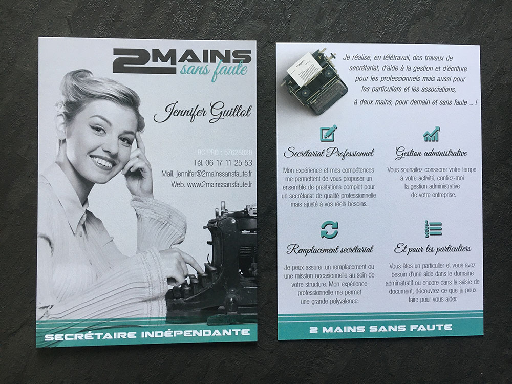 Création d’un pack publicitaire complet pour cette secrétaire indépendante. Pour elle, nous avons réalisé le logo, le site Internet, les flyers et les cartes de visite. Au niveau des impressions nous avons opté pour l’excellent rapport qualité/prix du vernis sélectif.