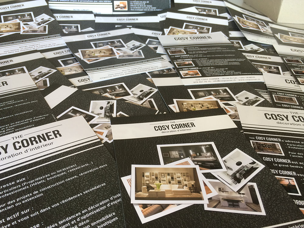 Création d’un pack publicitaire complet pour cette décoratrice d’intérieur située à Genève. Pour elle, nous avons réalisé le logo, le site Internet, la création et l’envoi de newsletter, les flyers, les cartes de visite et la brochure 36 pages. L’ensemble des supports de communication a été imprimé par nos soins.