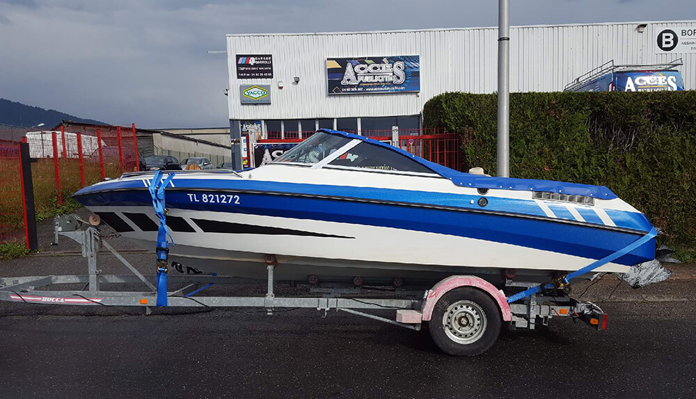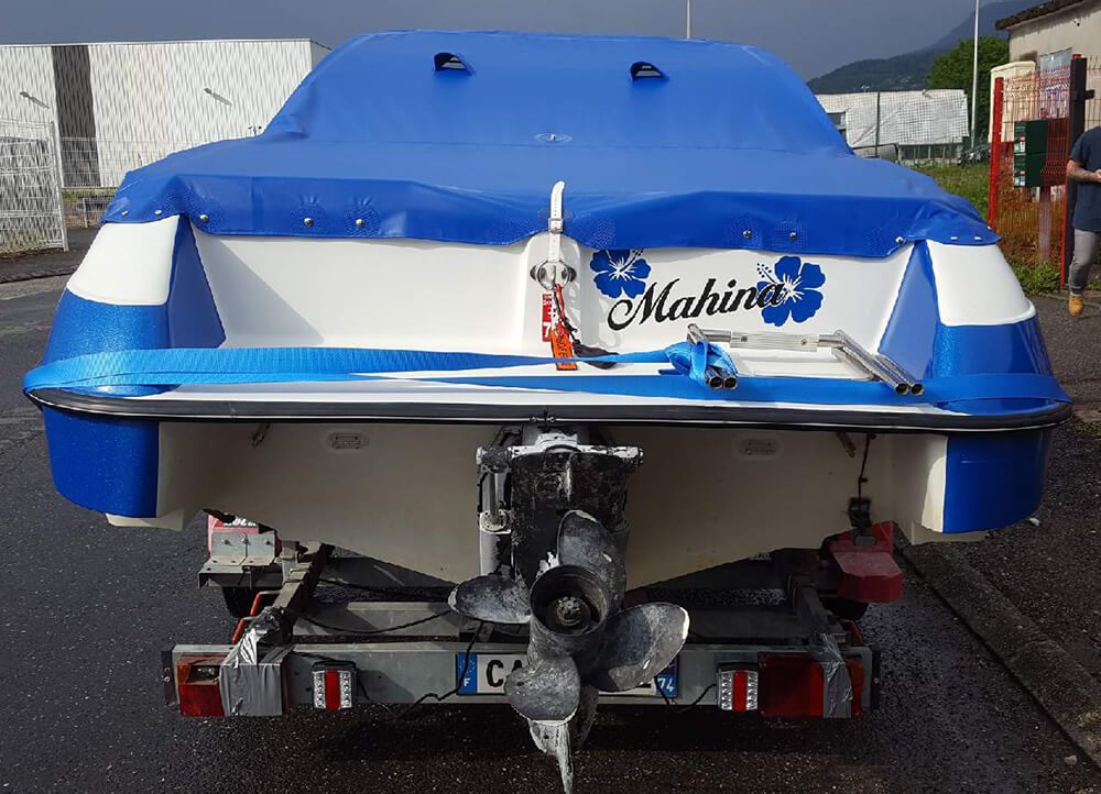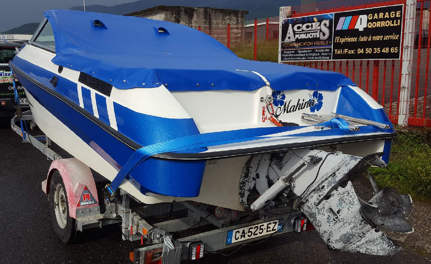 Réalisation d’un covering partiel afin de personnaliser le bateau de ce particulier.Décor réalisé par notre partenaire graphique OAK-Webdesign.