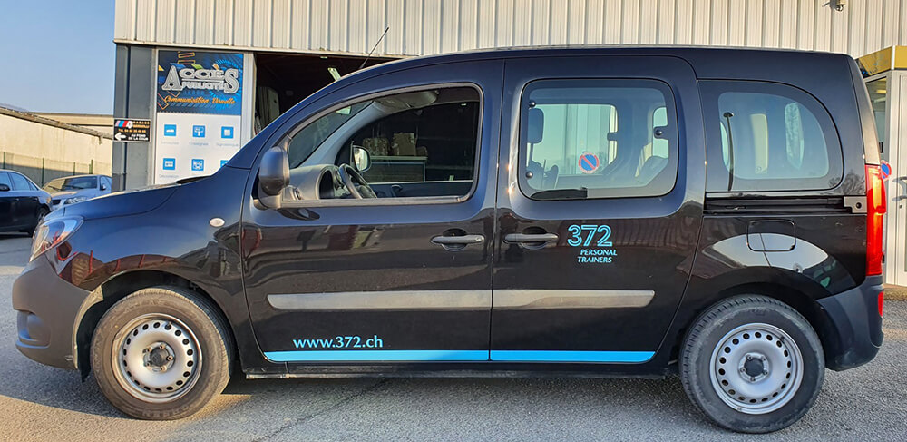 Réalisation d’un covering partiel avec mise en place de la nouvelle charte graphique de cette entreprise de coaching sportif qui intervient à Genève et en France voisine. Ce décor a été décliné sur toute la flotte de véhicules de cette société.