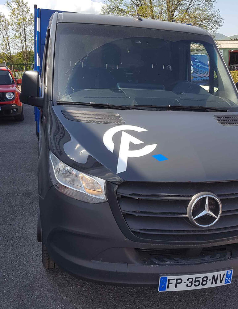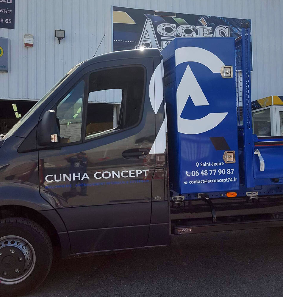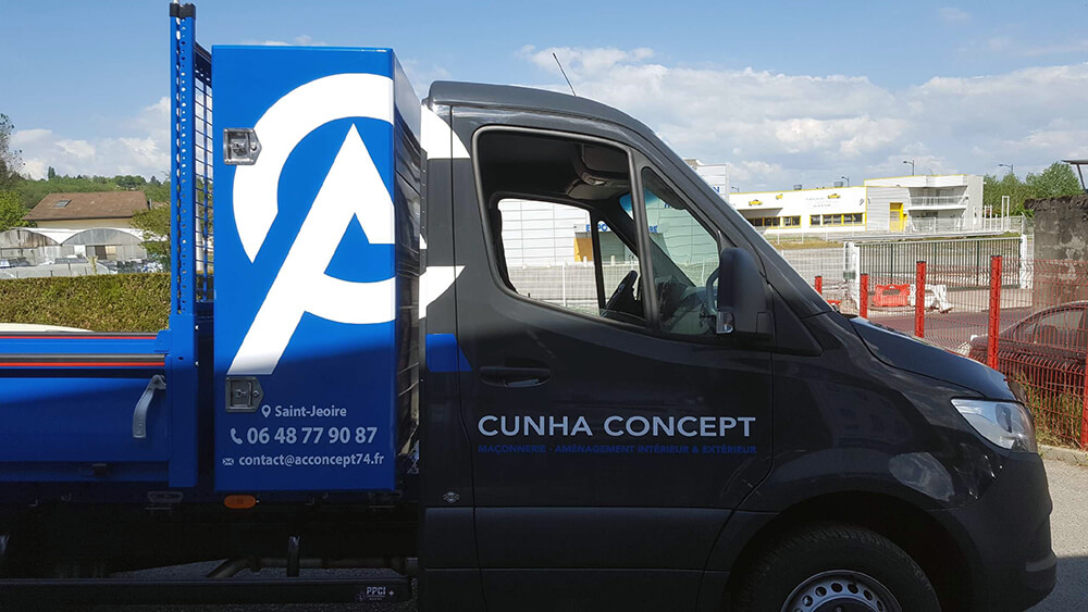 Réalisation d’un covering partiel sur le nouveau véhicule de cette entreprise de maçonnerie spécialisée dans les travaux d’aménagement intérieur et extérieur. Décor réalisé par notre partenaire graphique OAK-Webdesign et décliné sur toute la flotte de véhicules de l’entreprise.