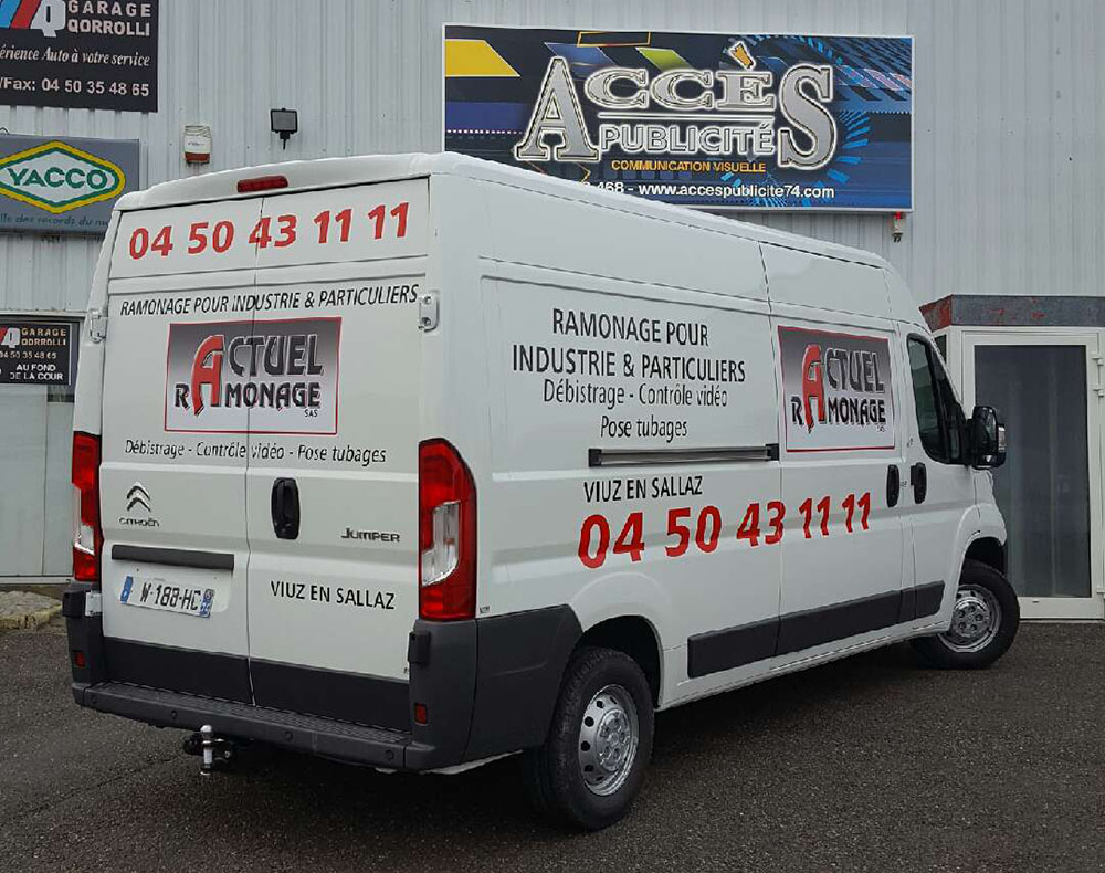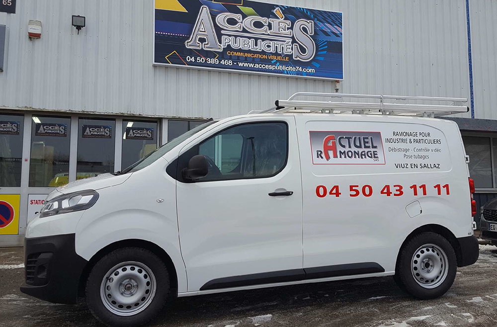 Réalisation d’un covering partiel pour une société spécialisée dans le ramonage industriel et particuliers. Ce décor a été décliné sur toute la flotte de véhicules de l’entreprise. Décor réalisé par nos soins