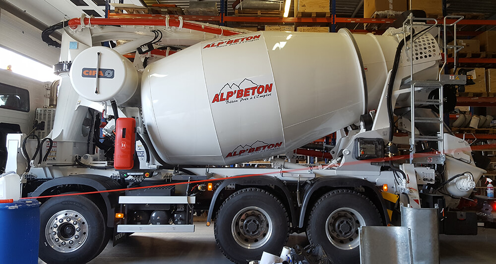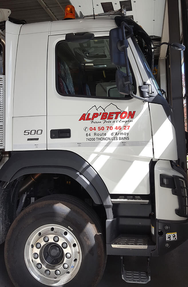 Réalisation d’un covering partiel XXL pour ce spécialiste du béton prêt à l’emploi. Ce décor a été décliné sur toute la flotte de véhicules de cette société. Décor réalisé par nos soins.