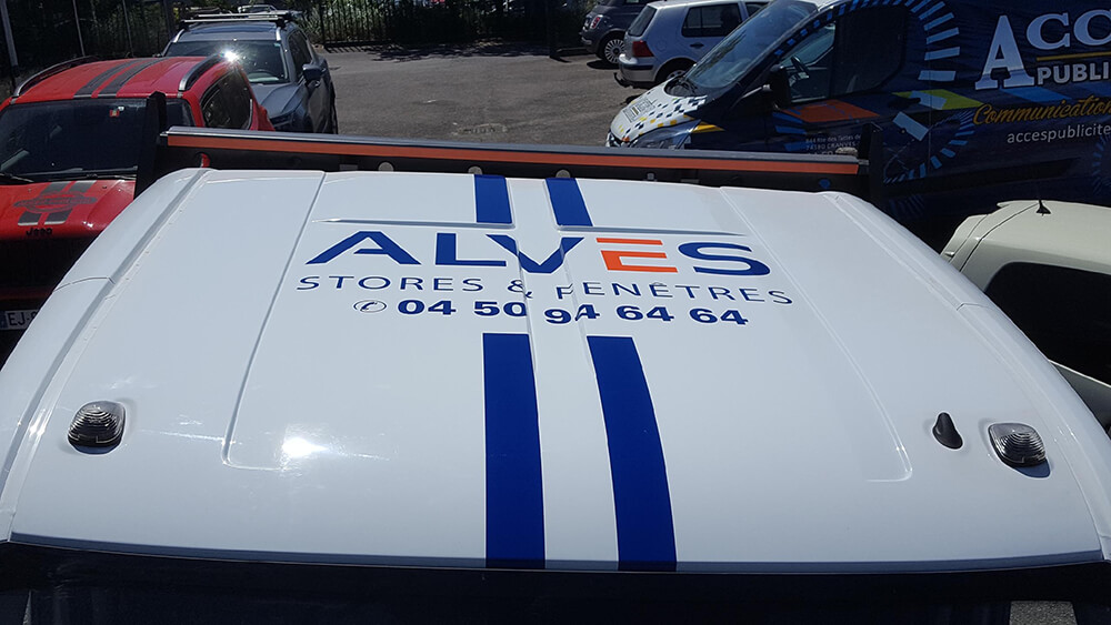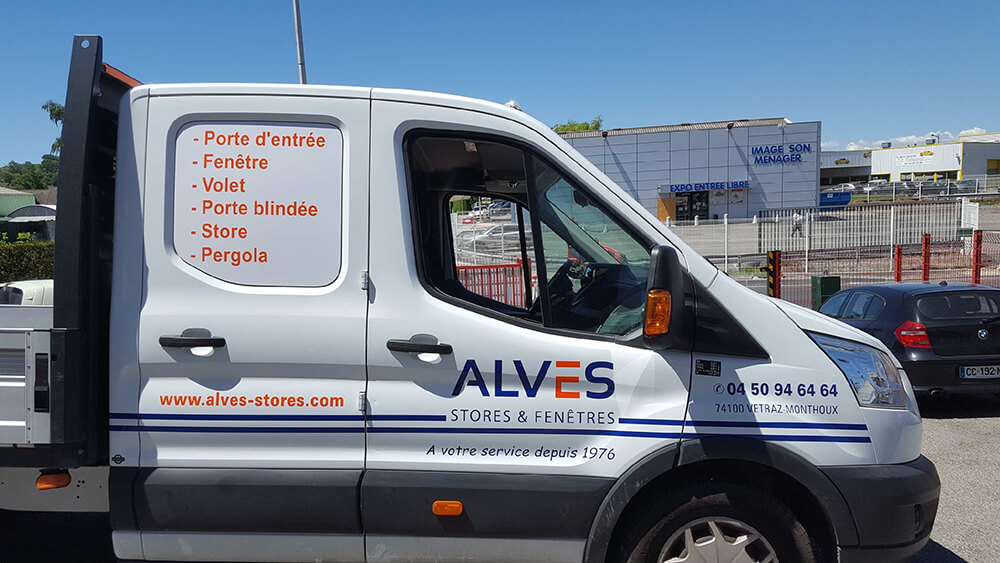 Réalisation d’un covering partiel sur le nouveau véhicule de cette entreprise de Vétraz-Monthoux spécialisée dans la vente de stores et de fenêtres. Décor réalisé par nos soins et décliné sur toute la flotte de véhicules de l’entreprise.