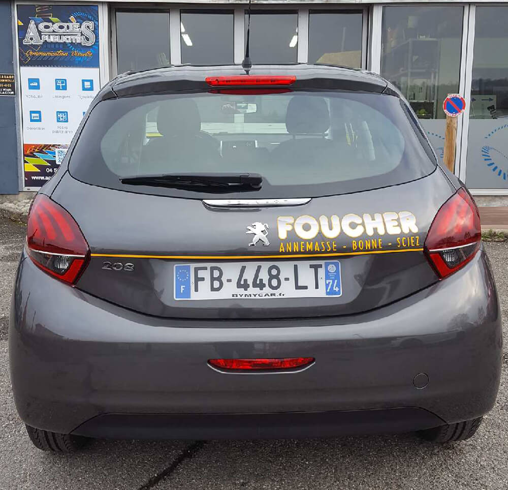 Réalisation d’un covering partiel sur le véhicule d’une auto-école. Ce décor a été décliné sur toute la flotte de véhicules de cette société. Décor réalisé par nos soins.