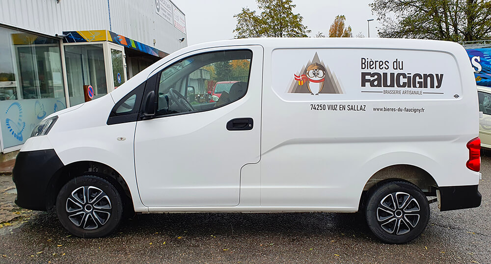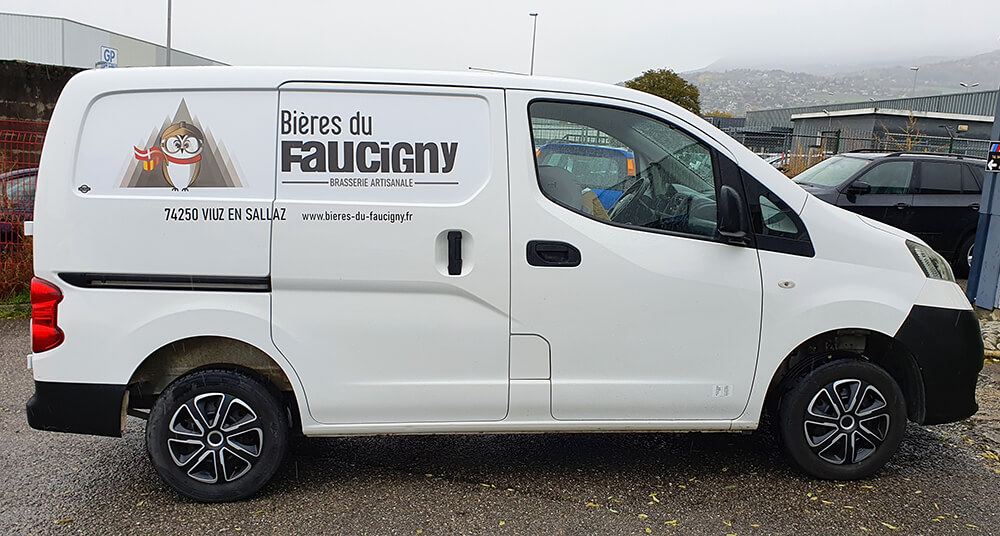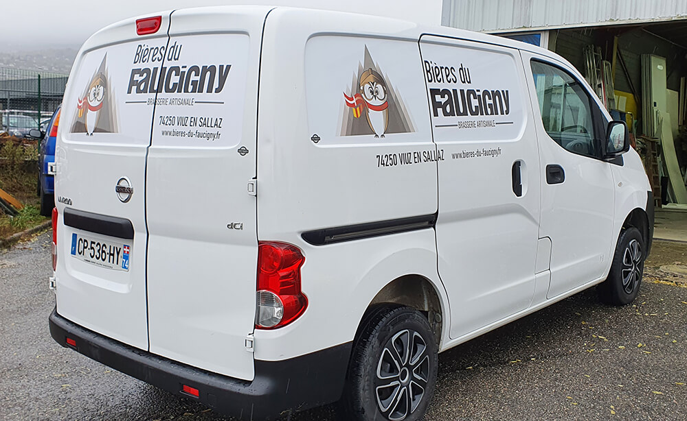 Réalisation d’un covering partiel sur le véhicule de cette brasserie artisanale installée à Viuz-En-Sallaz. Décor réalisé par nos soins.