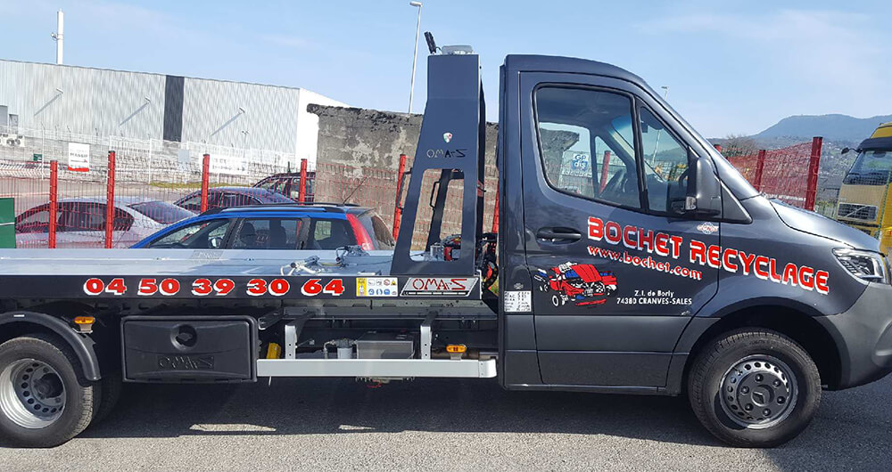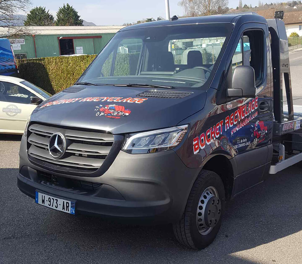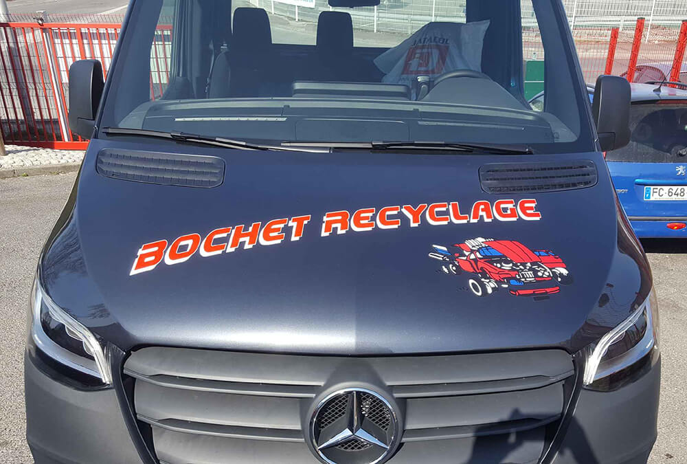 Réalisation d’un covering partiel pour les véhicules de cette société spécialisée dans le recyclage de pièces automobiles d’occasion. Ce décor a été décliné sur toute la flotte de véhicules de l’entreprise. Décor réalisé par nos soins