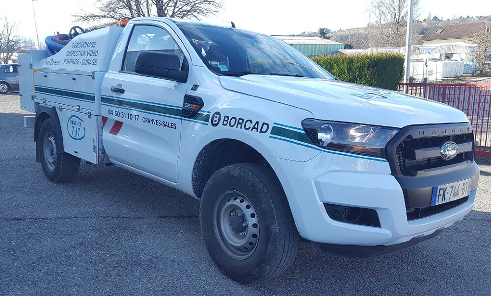 Réalisation d’un covering partiel pour le nouveau véhicule de la société Borcad, le spécialiste de vos canalisations. Ce décor a été décliné sur toute la flotte de véhicules de l’entreprise. Décor réalisé par nos soins.