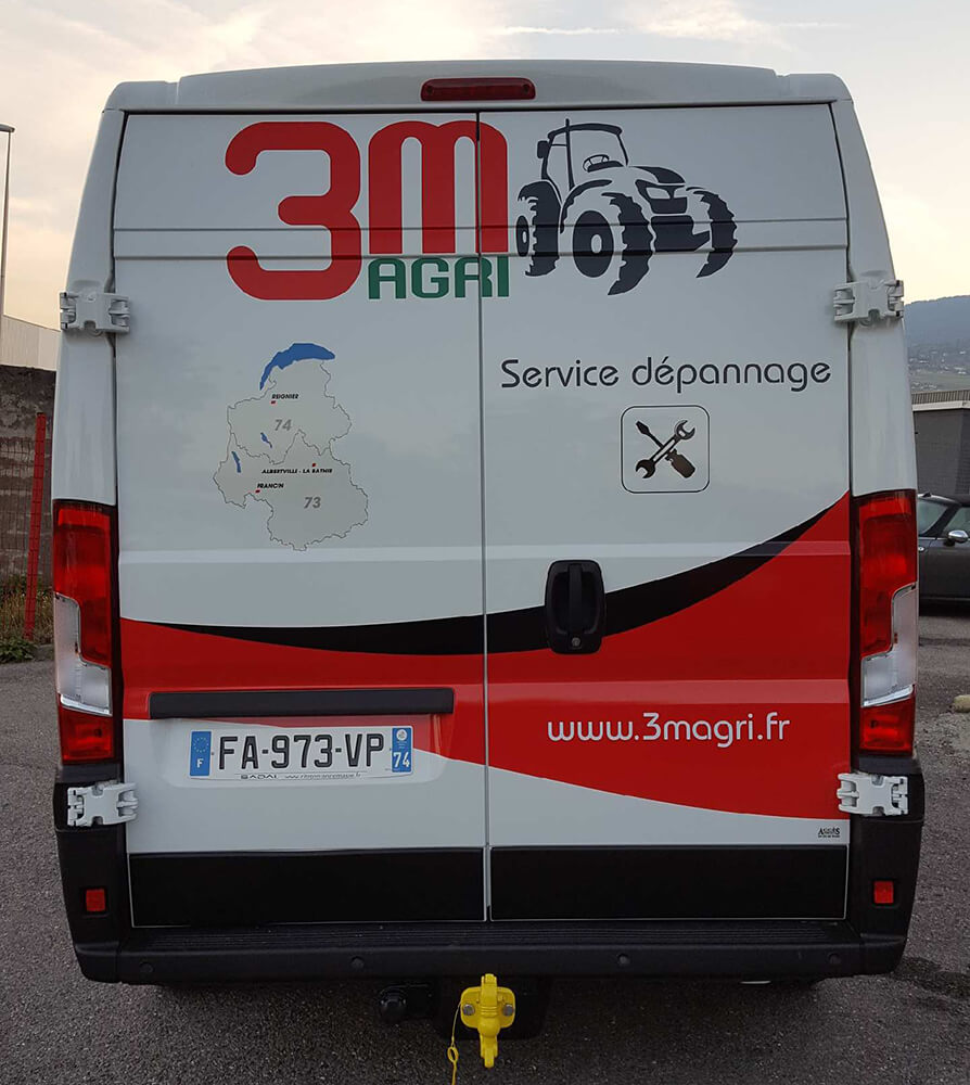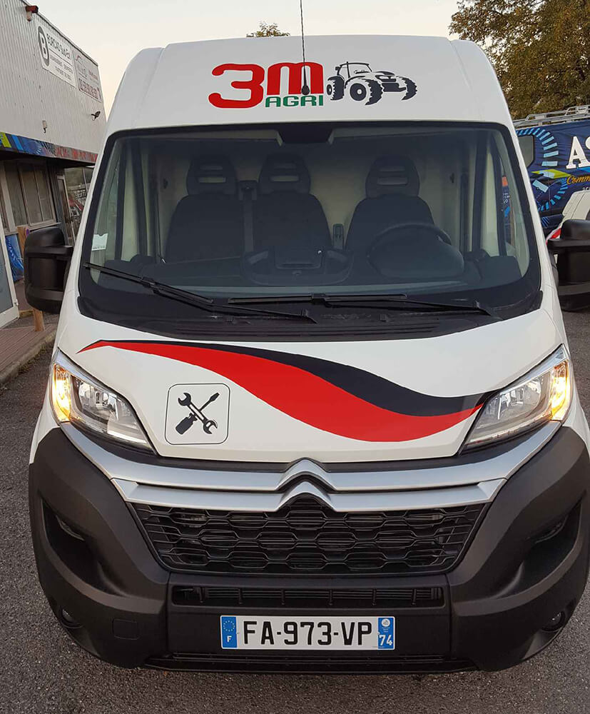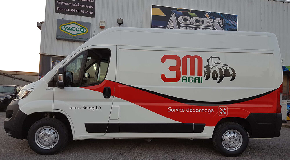 Réalisation d’un covering partiel pour les véhicules « 3M AGRI » d’une société spécialisée dans la vente de machines agricoles. Ce décor a été décliné sur toute la flotte de véhicules de cette société. Décor réalisé par nos soins.