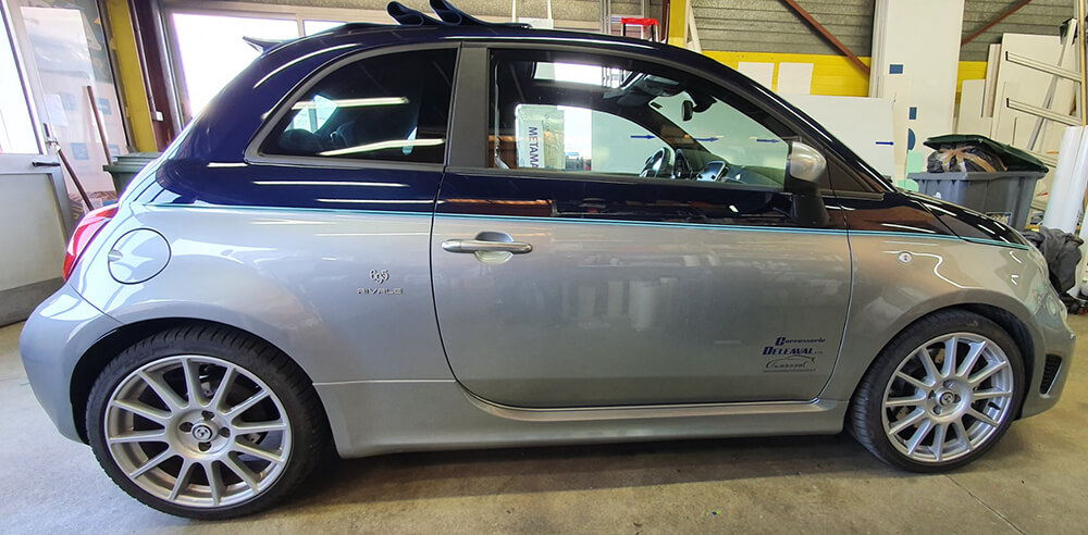 Réalisation d’un covering partiel sur le nouveau véhicule de courtoisie de la carrosserie Deleaval basée à Vétraz-Monthoux. Décor réalisé par nos soins.