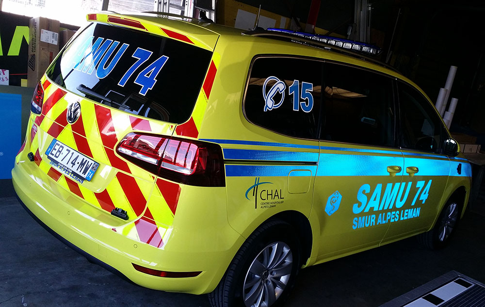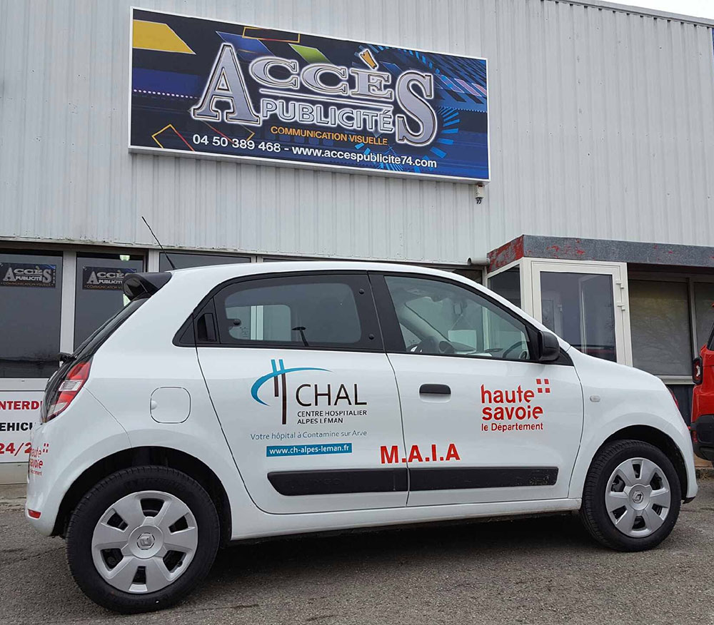Réalisation d’un covering partiel pour les véhicules de service d’un centre hospitalier. Ce décor a été décliné sur toute la flotte de véhicules. Décor réalisé par nos soins.