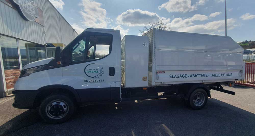Réalisation d’un covering partiel sur le nouveau véhicule de ce paysagiste spécialisé dans les travaux d’élagage, d’abattage et de taille de haies. Un décor entièrement conçu et réalisé par nos soins.