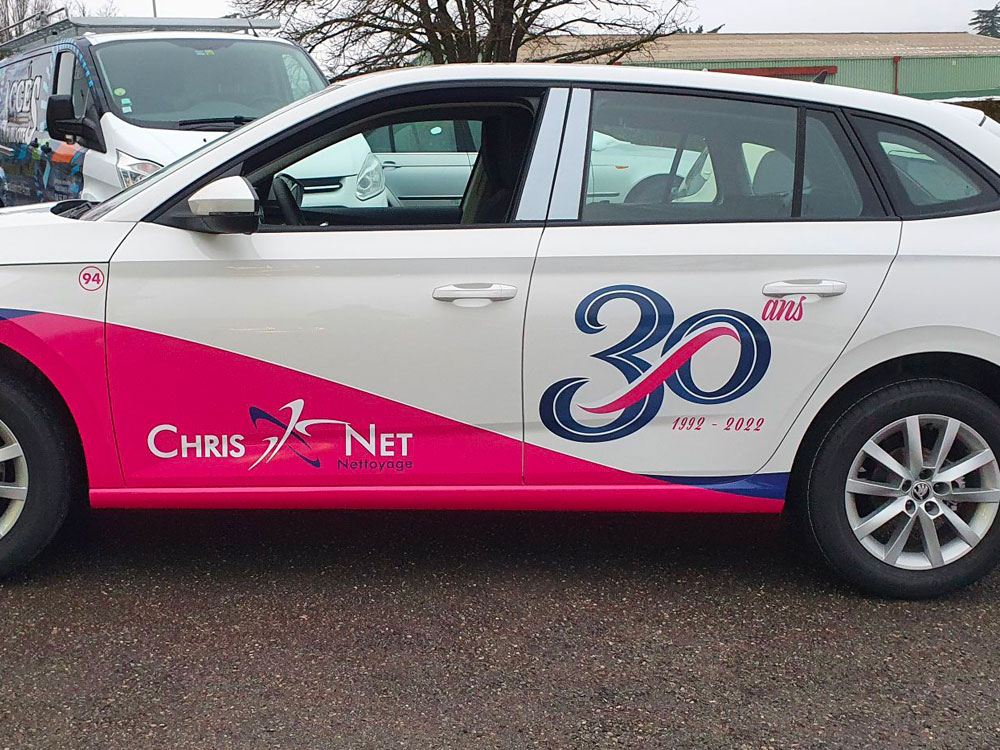 Réalisation d’un covering original sur le nouveau véhicule de cette entreprise de Nettoyage qui souhaitait communiquer sur ses 30ans d’exercice. Décor réalisé par notre partenaire graphique OAK-Webdesign.