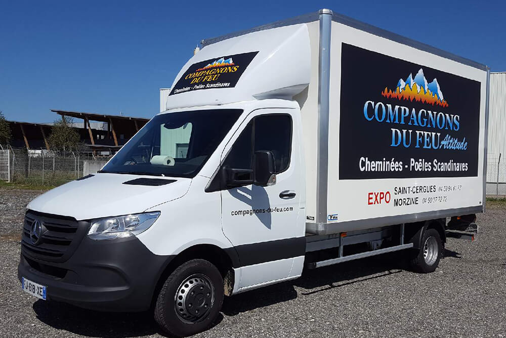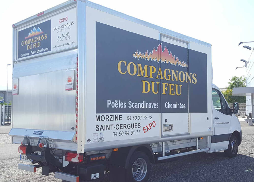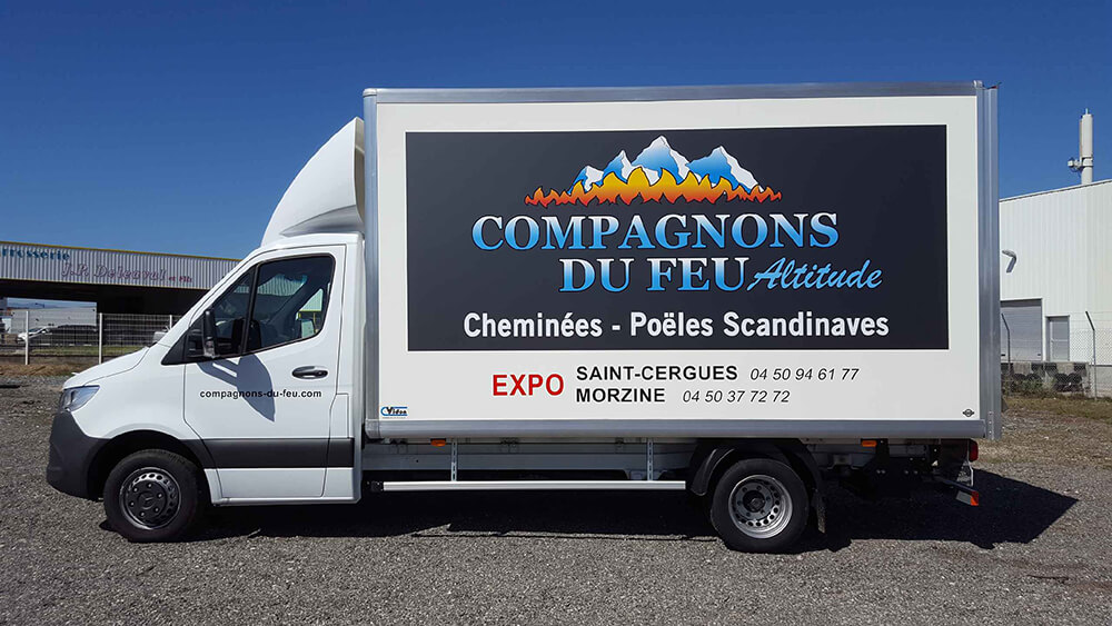 Réalisation d’un covering partiel pour le nouveau véhicule d’un cheministe installé à Saint-Cergues & Morzine. Ce décor a été décliné sur toute la flotte de véhicules de cette société. Décor réalisé par nos soins.