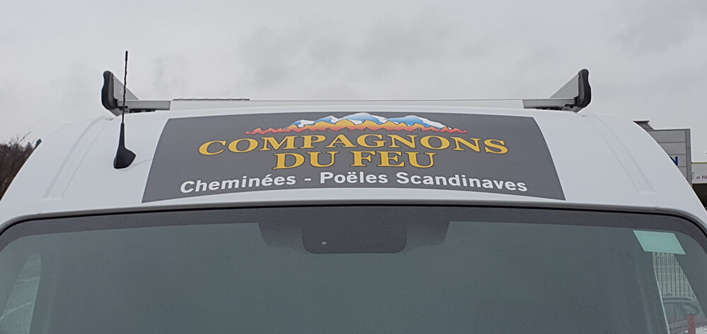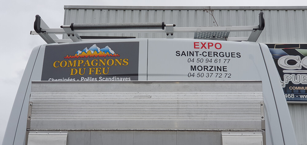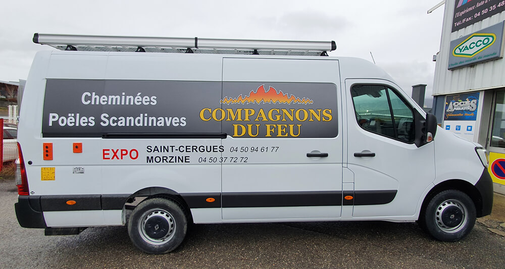 Réalisation d’un covering partiel pour le nouveau véhicule d’un cheministe installé à Saint-Cergues & Morzine. Ce décor a été décliné sur toute la flotte de véhicules de cette société. Décor réalisé par nos soins.