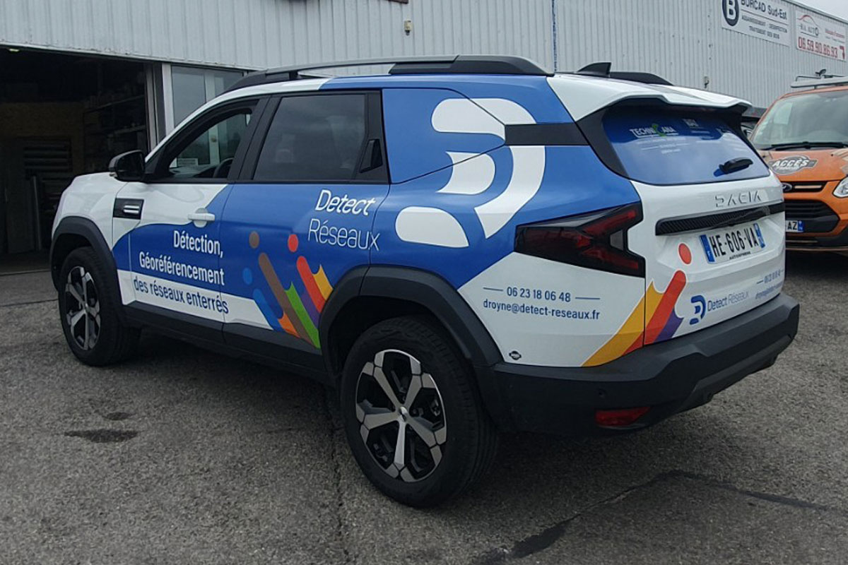 Réalisation d’un covering partiel pour le leader national en détection de réseaux enterrés, proposant des techniques non intrusives permettant d’identifier les réseaux souterrains grâce à la détection géo-radar et à l’induction électromagnétique. Décor réalisé par notre partenaire OAK-Webdesign et décliné sur l’ensemble de la flotte de véhicules de l’entreprise.