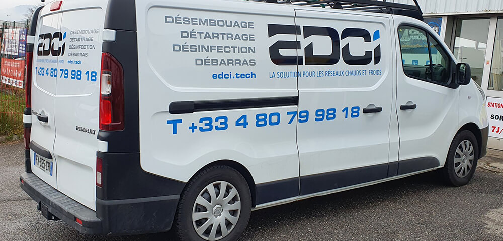 Réalisation d’un covering partiel sur les véhicules de cette nouvelle société spécialisée dans l’installation et l’entretien des réseaux chauds et froids. Décors fournis par l’entreprise.