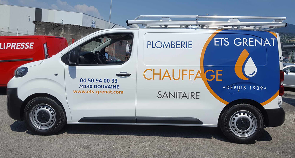 Réalisation d’un covering partiel sur le nouveau véhicule de cette entreprise de Douvaine spécialisée dans les travaux de plomberie, chauffage et sanitaire. Décor réalisé par nos soins et décliné sur toute la flotte de véhicules de l’entreprise.
