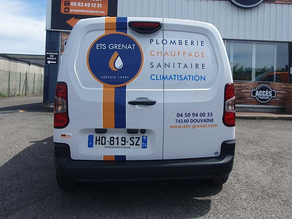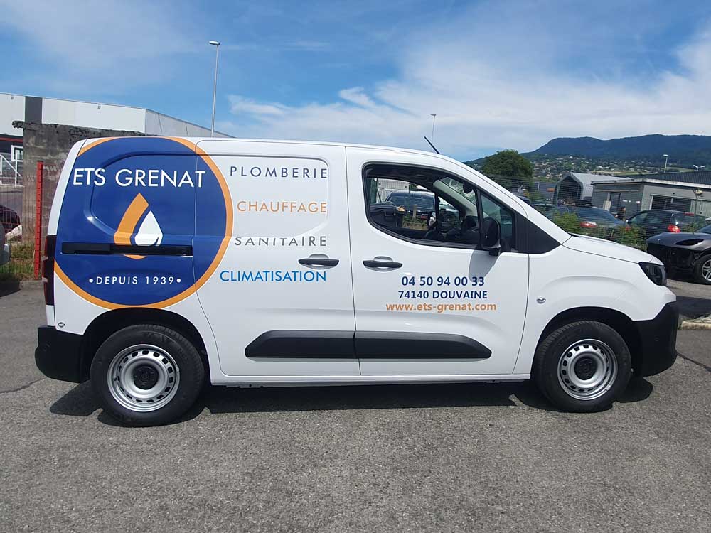 Réalisation d’un covering partiel sur le nouveau véhicule d’une entreprise de Douvaine spécialisée dans les travaux de plomberie, de chauffage et de sanitaire. Décor réalisé par nos soins et décliné sur toute la flotte de véhicules de l’entreprise.