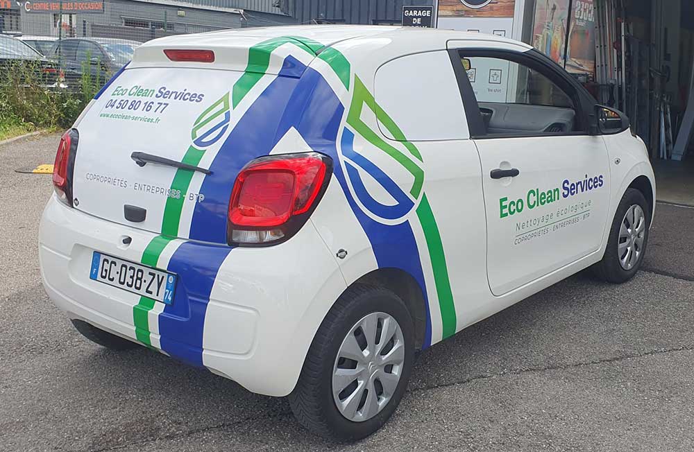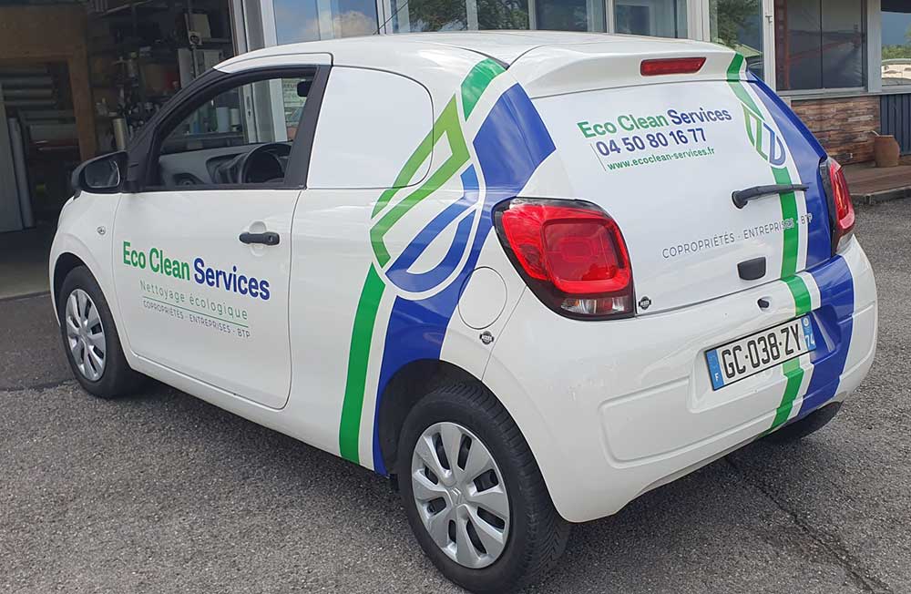 Réalisation d’un covering partiel sur le nouveau véhicule de cette entreprise de nettoyage basée à Annemasse. Décor réalisé par notre partenaire graphique OAK-Webdesign et décliné sur toute la flotte de véhicules de la société.