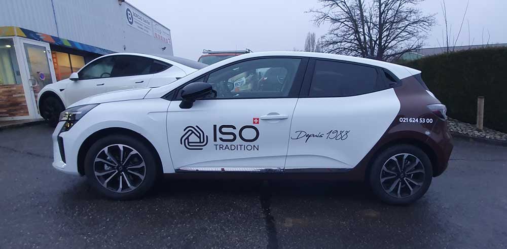 Réalisation d’un covering partiel sur la flotte de véhicules d’une entreprise suisse spécialisée dans l’isolation thermique de l’habitat. Fichiers fournis par le client.