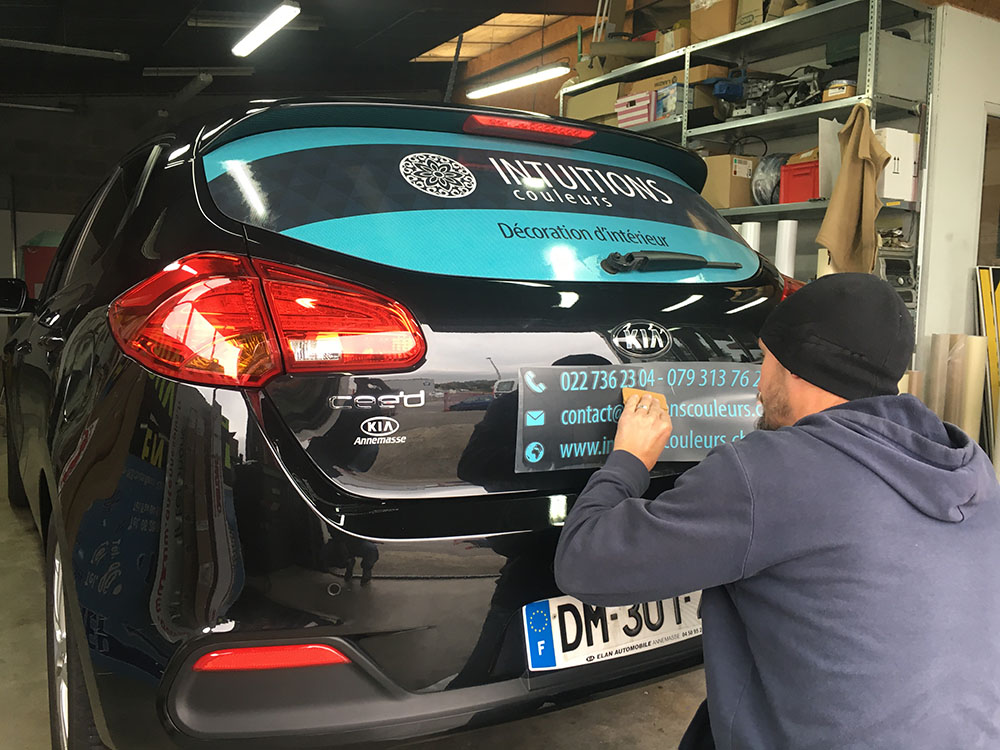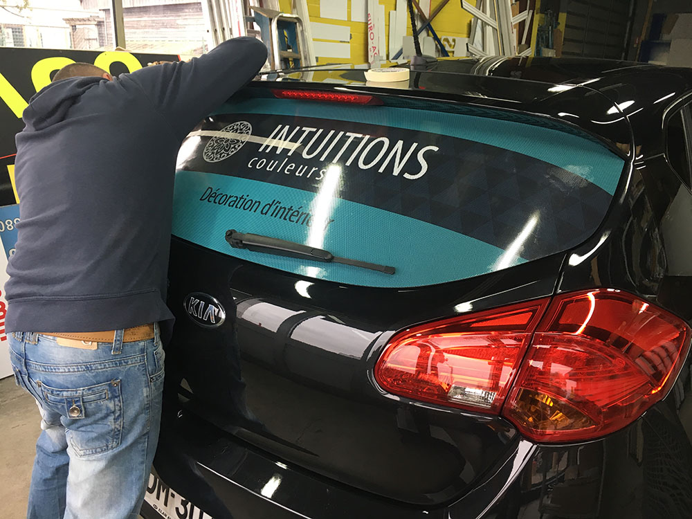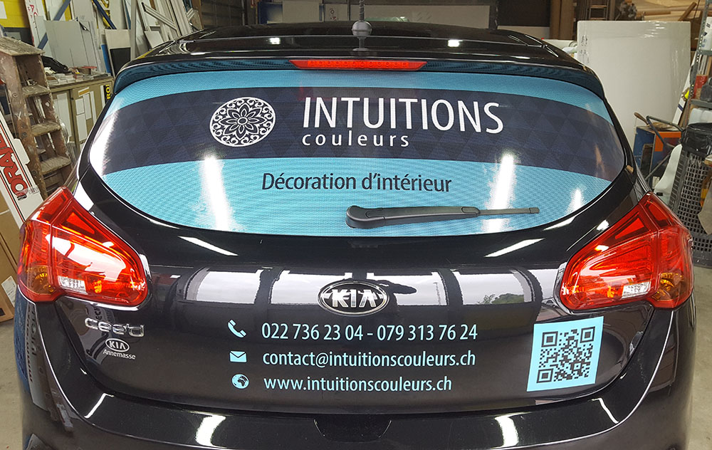 Réalisation d’un covering partiel pour une société de décoration d’intérieur. Décor réalisé par notre partenaire graphique OAK-Webdesign.