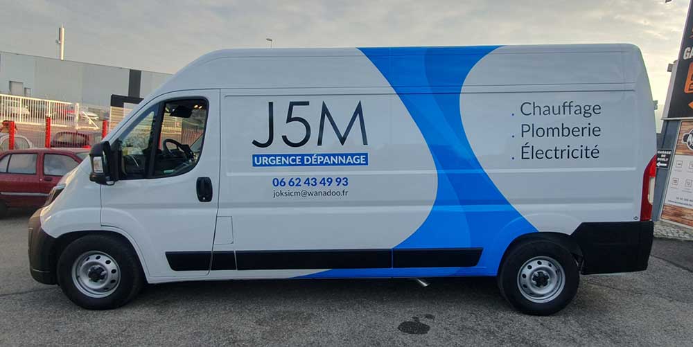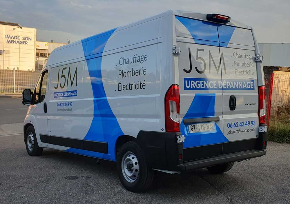 Réalisation d’un covering partiel sur le nouveau véhicule de cette entreprise basée à Ambilly, spécialisée dans les travaux de chauffage, plomberie et électricité. Décor réalisé par notre partenaire graphique OAK-Webdesign.