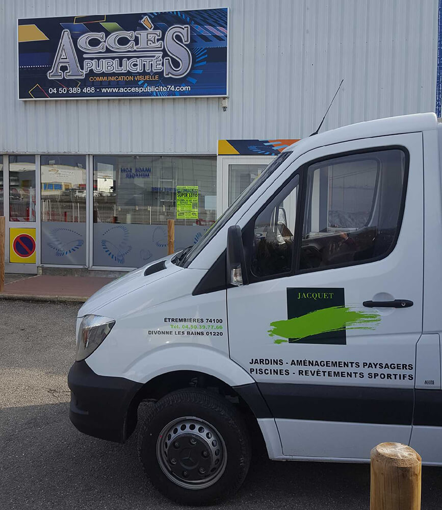 Réalisation d’un covering partiel pour les véhicules de ce paysagiste spécialiste des revêtements extérieurs. Ce décor a été décliné sur toute la flotte de véhicules de cette société. Décor réalisé par nos soins.