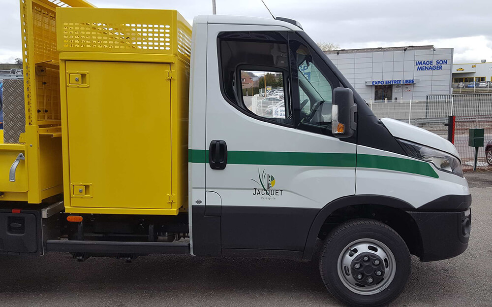 Réalisation d’un covering partiel pour les véhicules de ce paysagiste spécialiste des revêtements extérieurs. Ce décor a été décliné sur toute la flotte de véhicules de cette société. Décor réalisé par nos soins.