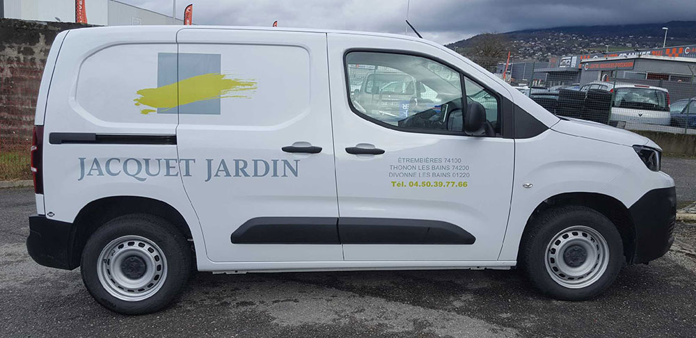 Réalisation d’un covering partiel sur le nouveau véhicule de ce paysagiste d’Étrembières. Décor réalisé par nos soins et décliné sur toute la flotte de l’entreprise.