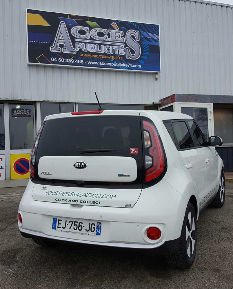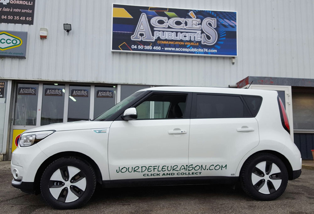 Réalisation d’un covering partiel pour les véhicules d’un fleuriste. Ce décor a été décliné sur toute la flotte de véhicules de l’entreprise. Décor réalisé par nos soins