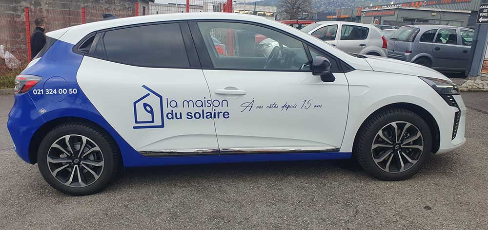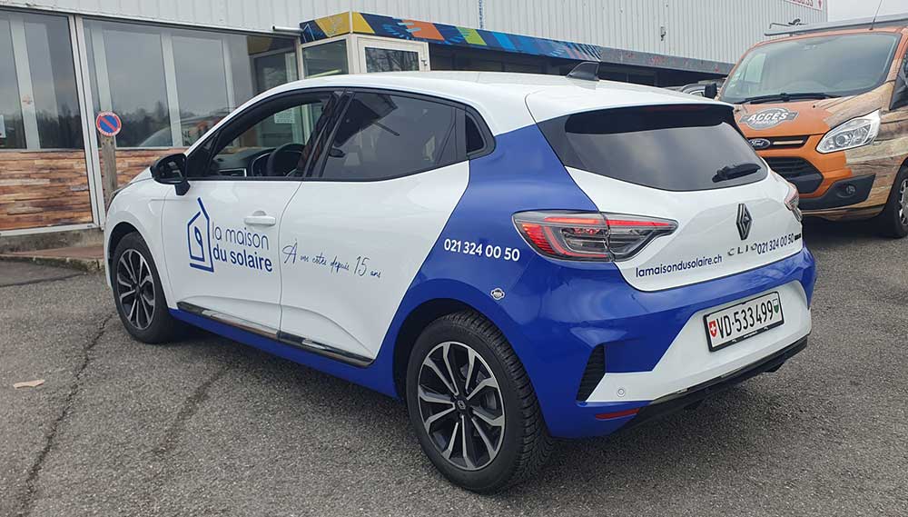 Réalisation d’un covering partiel sur la flotte de véhicules d’une entreprise suisse spécialisée dans les énergies solaires. Fichiers graphiques fournis par le client.