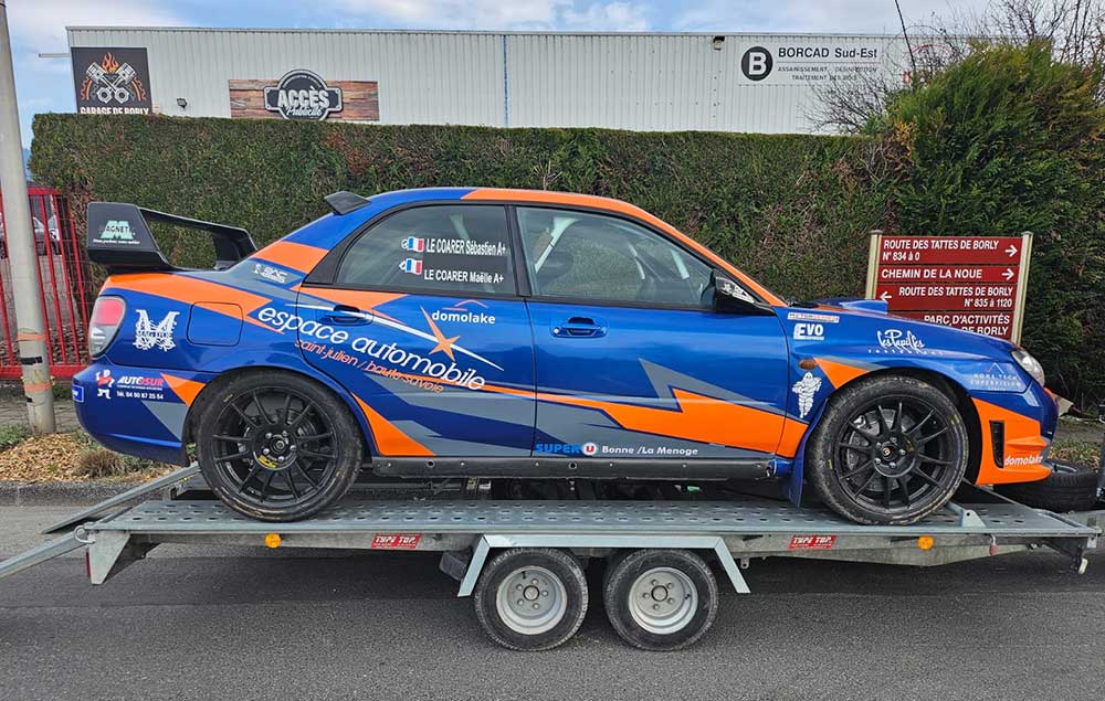 Réalisation d’un covering partiel sur le véhicule d’un pilote de rallye que nous soutenons dans ses exploits. Une création 100 % sur mesure, signée par nos soins !