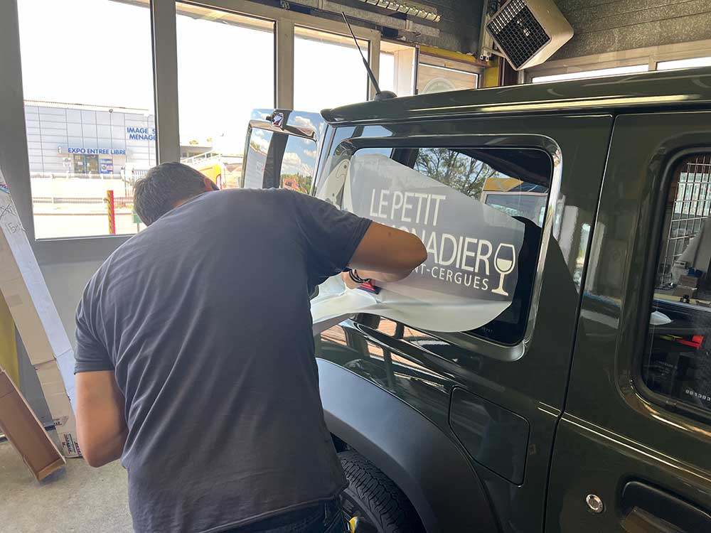 Réalisation d’un covering partiel sur le véhicule d’un bar de village installé sur la commune de Saint-Cergues. Décor réalisé par notre partenaire graphique OAK-Webdesign.