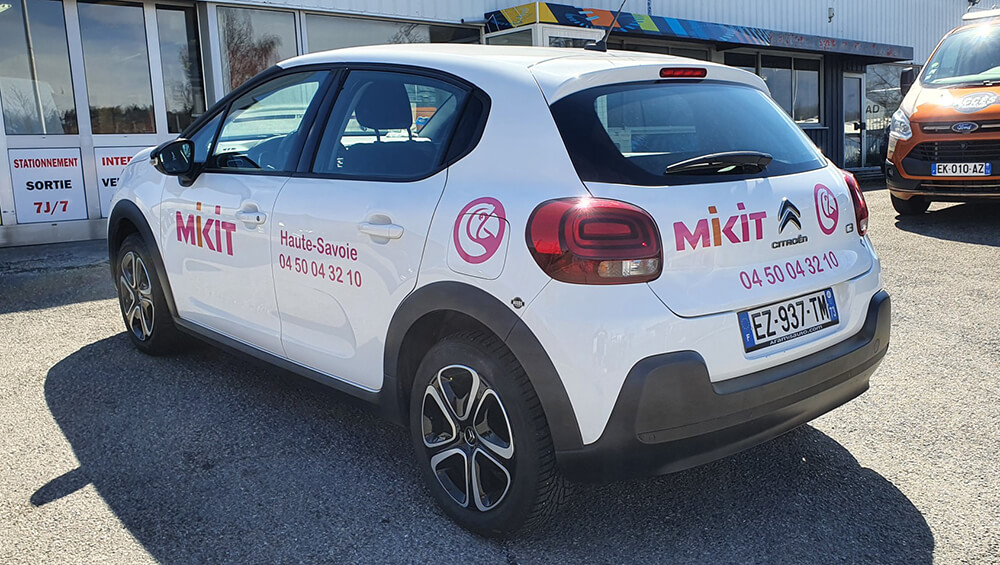 Réalisation d’un covering partiel sur le nouveau véhicule de ce constructeur de maisons individuelles. Décor fourni par le client.