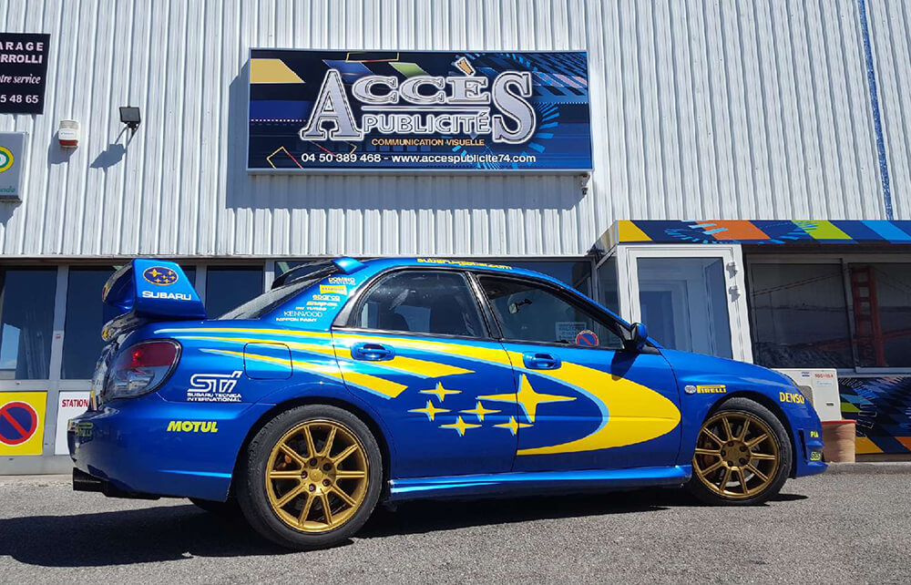 Réalisation d’un covering partiel afin de personnaliser le véhicule d’un particulier. Décor réalisé par nos soins.