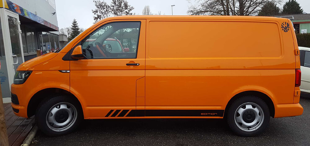Personnalisation de série d’un van Volkswagen pour un particulier. Décor fourni par le client.