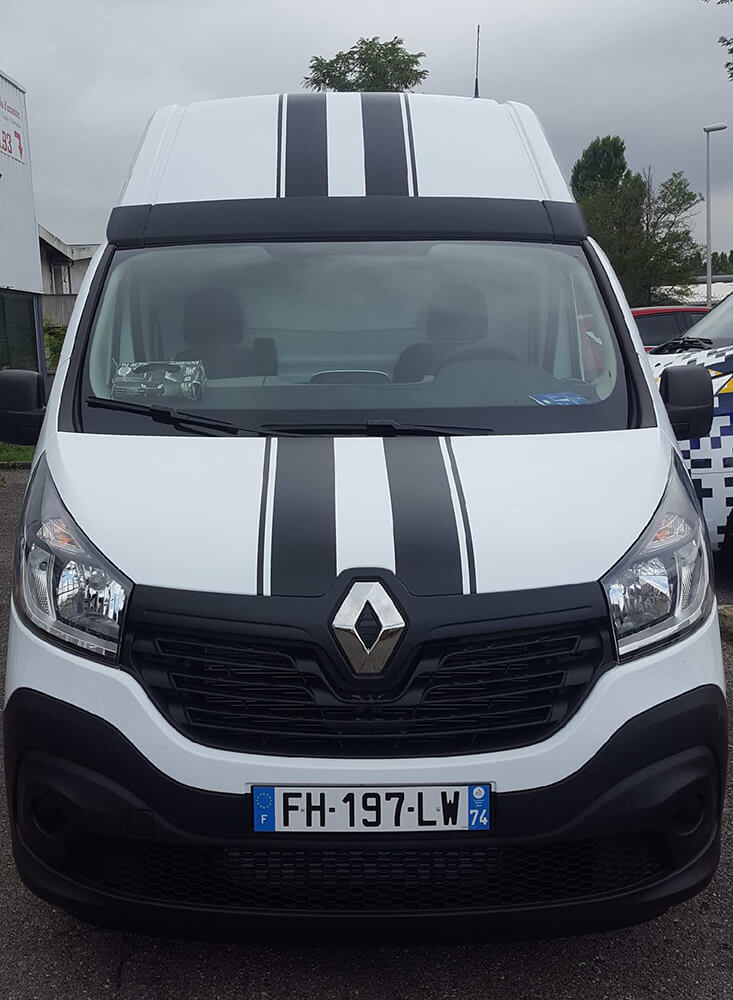 Réalisation d’un covering partiel afin de personnaliser le véhicule d’un particulier. Décor réalisé par nos soins.