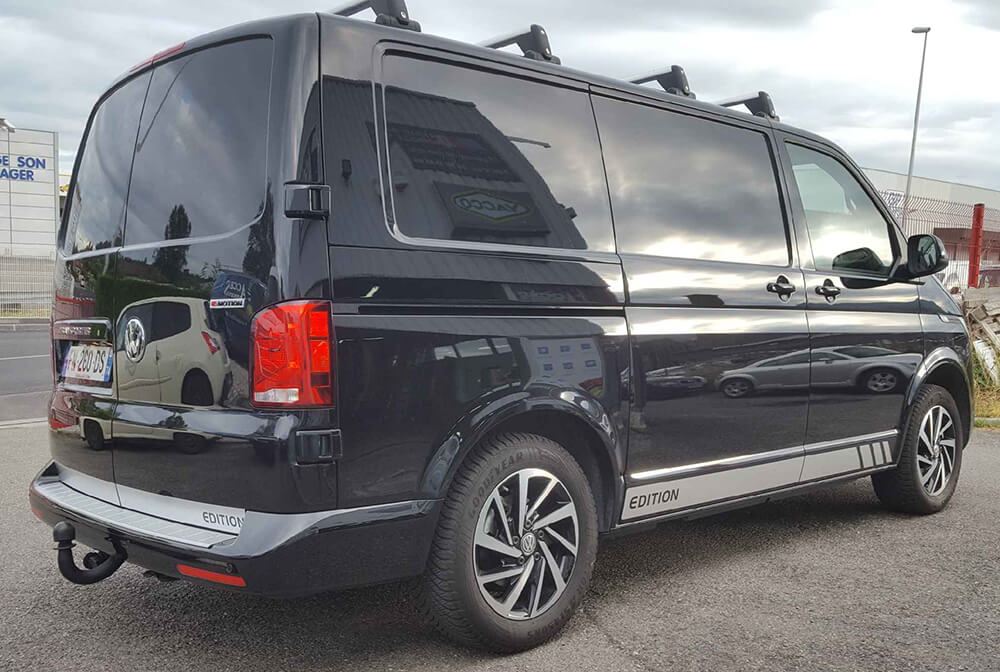 Personnalisation de série d’un van Volkswagen pour un particulier. Décor fourni par le client.