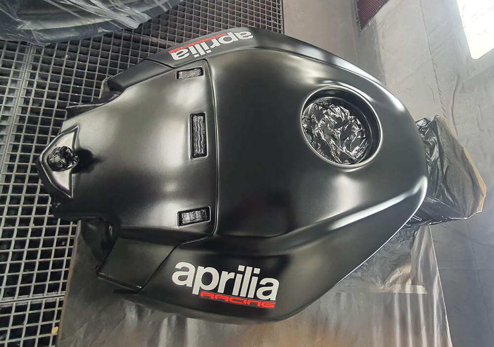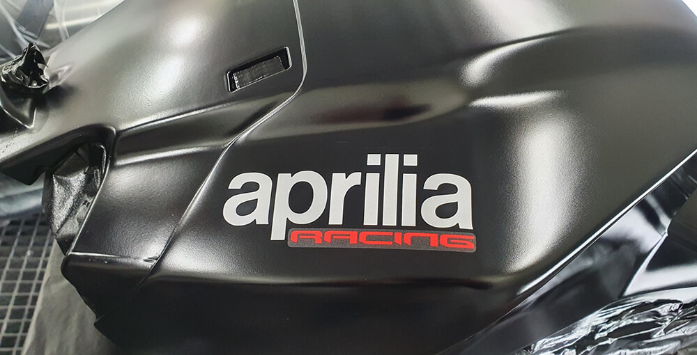 Personnalisation de la moto d’un particulier en adhésif teinté masse. Décor réalisé par nos soins.